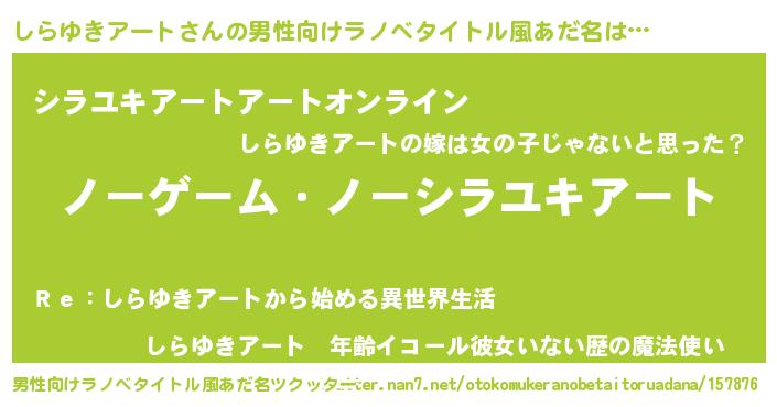 | 伝説のあだ名 | 『魔王と互角に渡り合う錬金術士しらゆきアート』 |