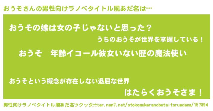 | 女子向けラノベタイトル風あだ名 | 『おうその玉の輿計画!』 |