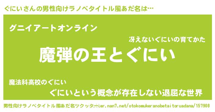 | 意味不明あだ名 | 『住所不定無職ぐにい(43歳)』『自称ぐにい』 |
