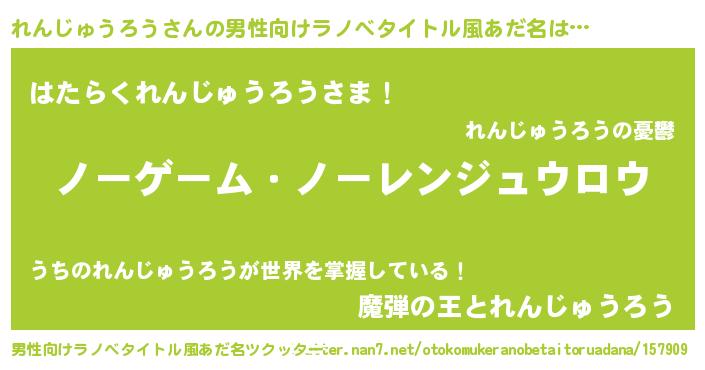| 女子向けラノベタイトル風あだ名 | 『死神れんじゅうろうの再婚』 |