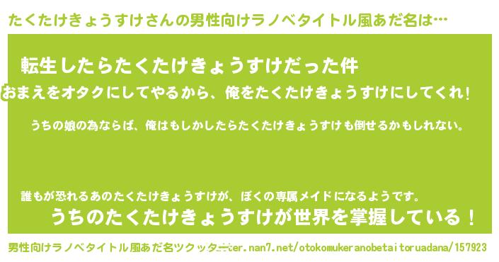 | 女子向けラノベタイトル風あだ名 | 『たくたけきょうすけの婚約者』 |