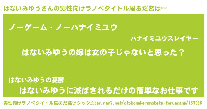 | 女子向けラノベタイトル風あだ名 | 『はないみゆう様がみてる』 |