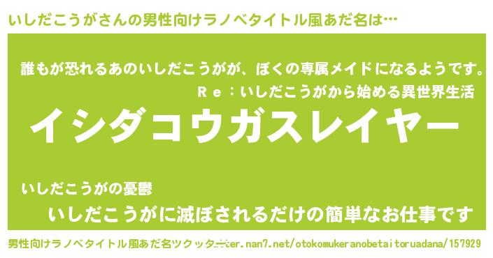 | 胡散臭い通販商品みたいなあだ名 | 『絶対に幸福をもたらす健康食品…その名も「いしだこうが」』 |