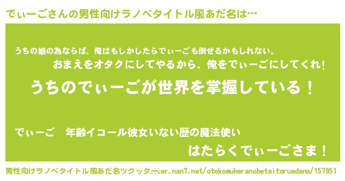 | 女子向けラノベタイトル風あだ名 | 『男装でぃーごの憂鬱な任務』 |