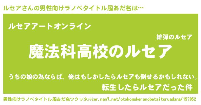 | 女子向けラノベタイトル風あだ名 | 『ルセアアンティーク』『ルセアの婚約者』 |