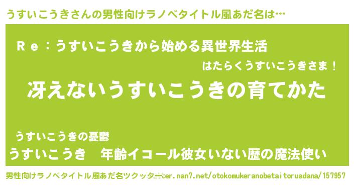 | 意味不明あだ名 | 『自称うすいこうき』 |