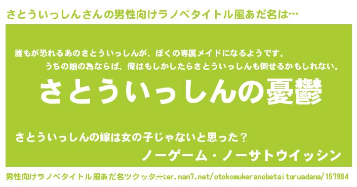 | 胡散臭い通販商品みたいなあだ名 | 『必ず成功する霊験あらたかなお札…その名も「さとういっしん」』 |