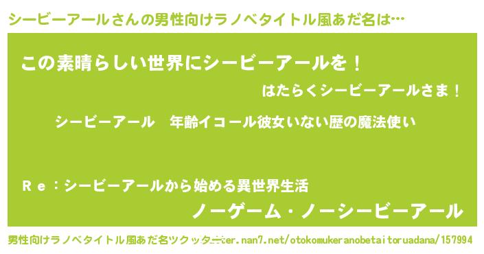 | 胡散臭い通販商品みたいなあだ名 | 『あなたにだけ特別に提供する世界で10本だけ現存している希少なブランデー…その名も「シービーアール」』 |
