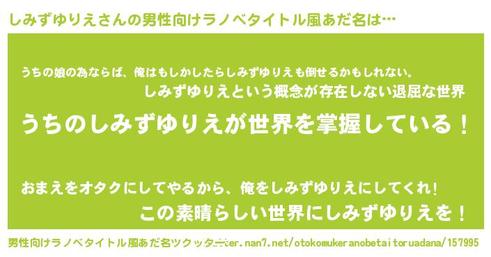 | 意味不明あだ名 | 『しみずゆりえフォーエバー』 |