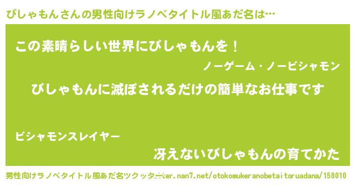 | ヒーロー風カッコイイあだ名 | 『仮面ビシダー』『慈愛の使者びしゃもん』 |