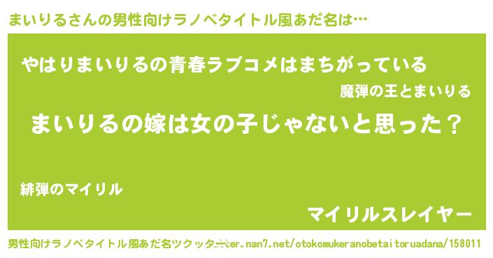 | 女子向けラノベタイトル風あだ名 | 『まいりる様がみてる』 |