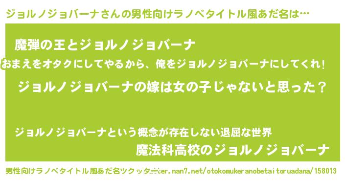 ジョルノジョバーナさんの男性向けラノベタイトル風あだ名をツクッター!