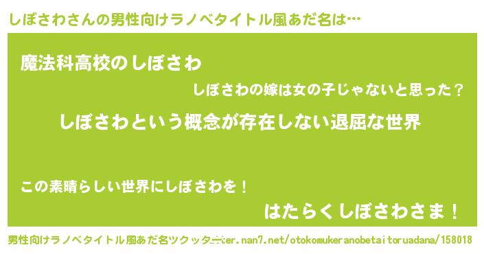 | 女子向けラノベタイトル風あだ名 | 『しぼさわの契約王妃』 |