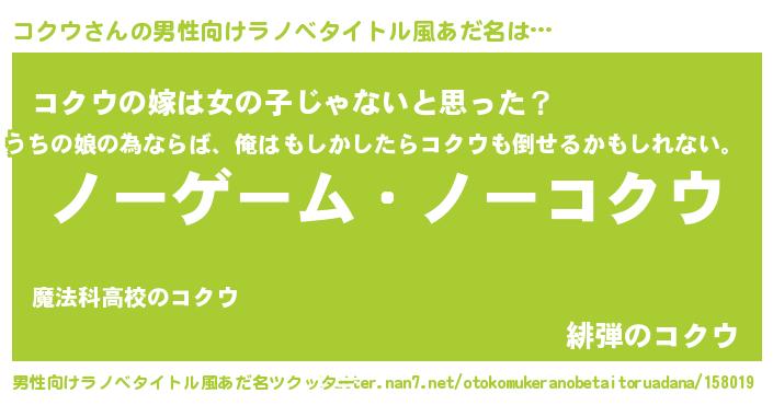 | ヒーロー風カッコイイあだ名 | 『慈愛の使者コクウ』『炎刃騎士コク』 |