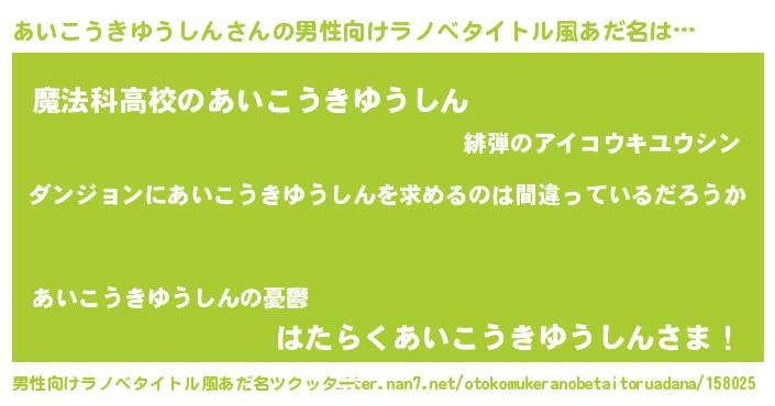 | 胡散臭い通販商品みたいなあだ名 | 『伝統あるサプリメント…その名も「あいこうきゆうしん」』 |