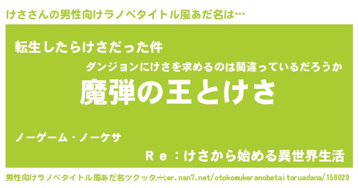 | 女子向けラノベタイトル風あだ名 | 『乙女ゲームの破滅フラグしかない悪役けさに転生してしまった…』 |