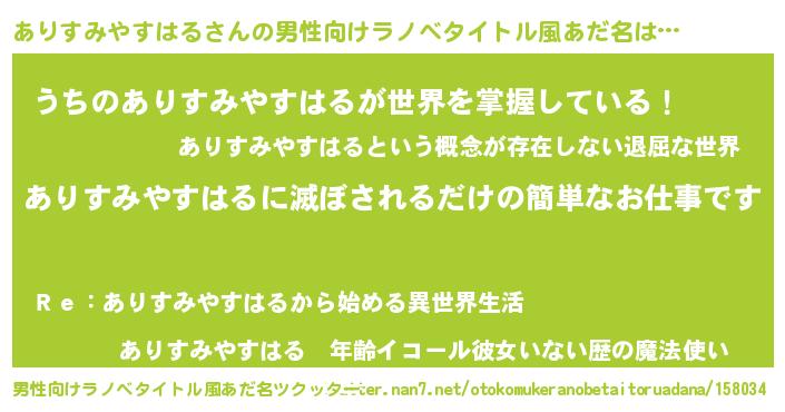 ありすみやすはるさんの男性向けラノベタイトル風あだ名をツクッター!