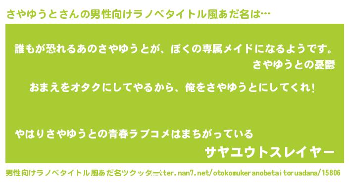 さやゆうとさんの男性向けラノベタイトル風あだ名をツクッター!