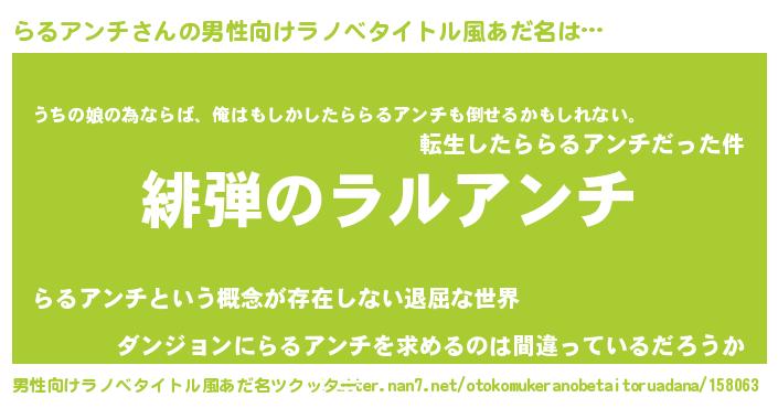| 意味不明あだ名 | 『らるアンチフォーエバー』 |