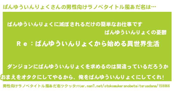 | ヒーロー風カッコイイあだ名 | 『最強戦士バンユウインリョク』 |