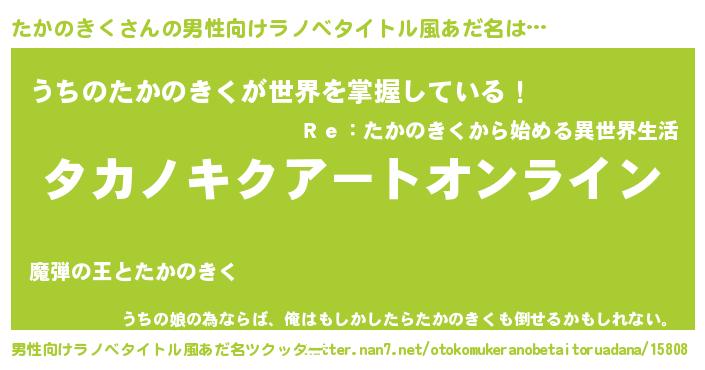 たかのきくさんの男性向けラノベタイトル風あだ名をツクッター!