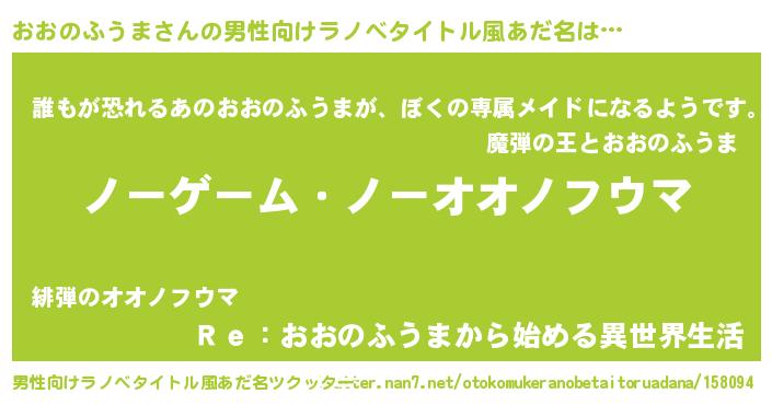 | 女子向けラノベタイトル風あだ名 | 『おおのふうま恋絵巻』 |