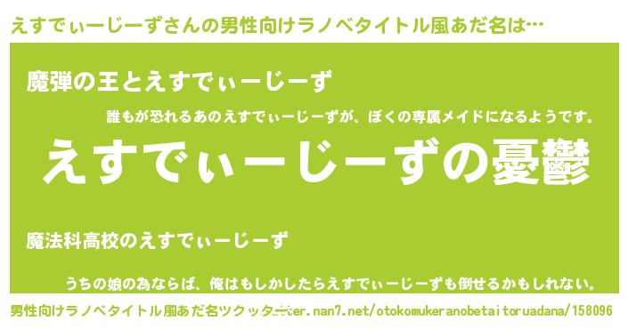 | 女子向けラノベタイトル風あだ名 | 『えすでぃーじーず姫と円卓の騎士』 |