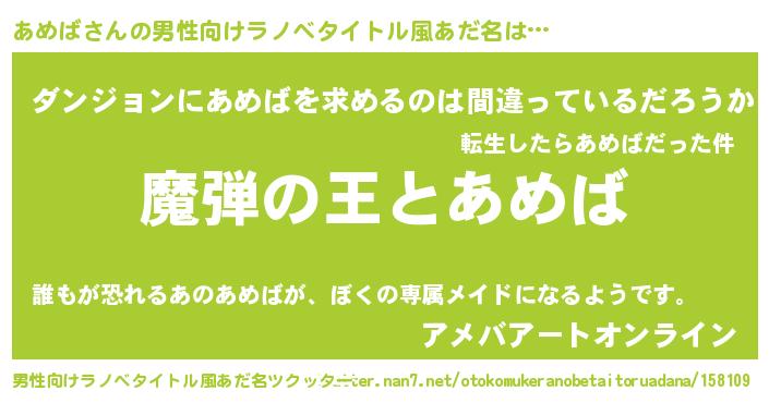 | 意味不明あだ名 | 『住所不定無職あめば(95歳)』 |