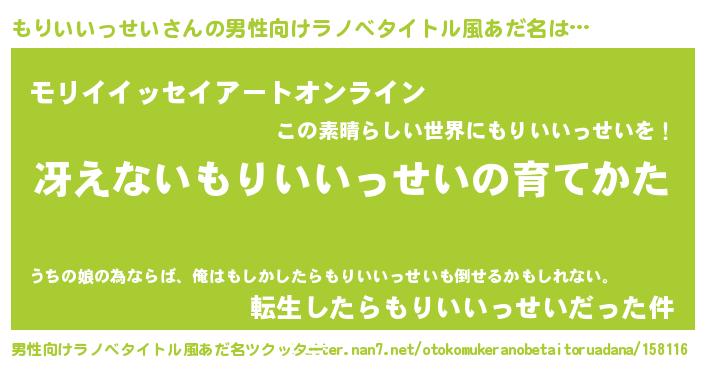 もりいいっせいさんの男性向けラノベタイトル風あだ名をツクッター!