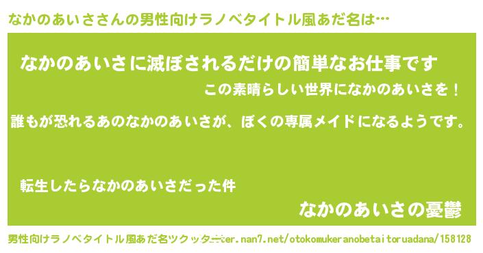 | 女子向けラノベタイトル風あだ名 | 『異世界でカフェなかのあいさを開店しました。』 |