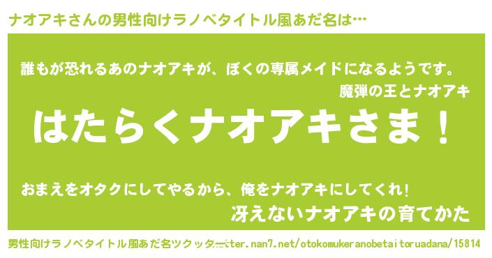 | ヘコむあだ名 | 『ナオアキ(笑)』『ナオにゅー』 |