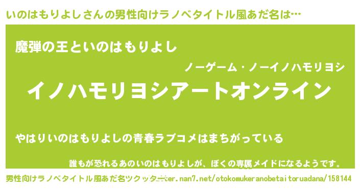 | ヒーロー風カッコイイあだ名 | 『スーパーイノハモリヨシ』 |
