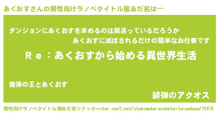 | ヒーロー風カッコイイあだ名 | 『最強戦士アクオス』『炎刃騎士アク』 |