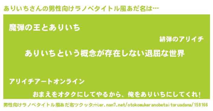| 胡散臭い通販商品みたいなあだ名 | 『来世でも幸せになれる健康食品…その名も「ありいち」』 |
