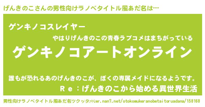 | 女子向けラノベタイトル風あだ名 | 『誰かこのげんきのこを説明してください! ~契約から始まるウェディング~』 |