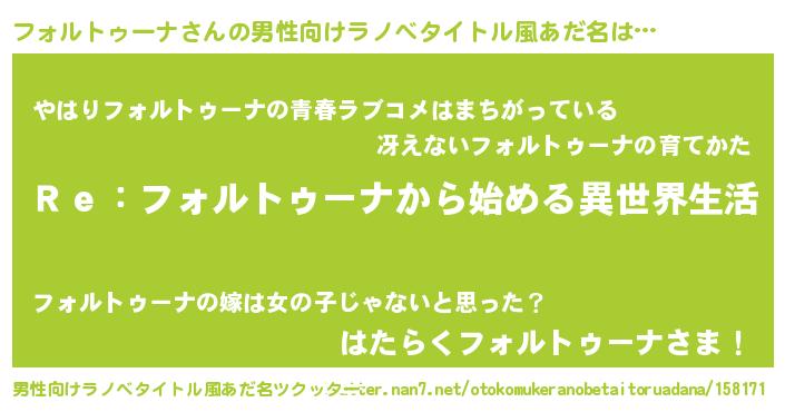| 意味不明あだ名 | 『自称フォルトゥーナ』 |