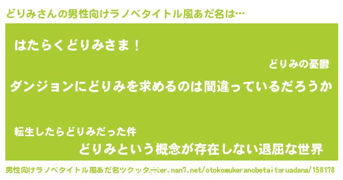 | 女子向けラノベタイトル風あだ名 | 『どりみは平凡を望む』 |