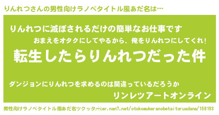 | 胡散臭い通販商品みたいなあだ名 | 『モテモテ間違いなしブレスレット…その名も「りんれつ」』 |