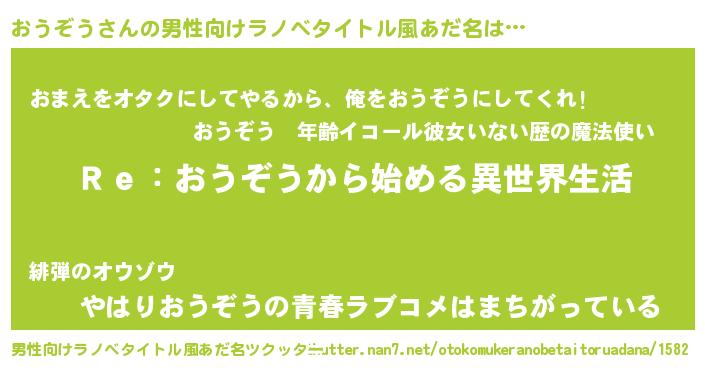 | 女子向けラノベタイトル風あだ名 | 『おうぞうストレイドッグス』 |