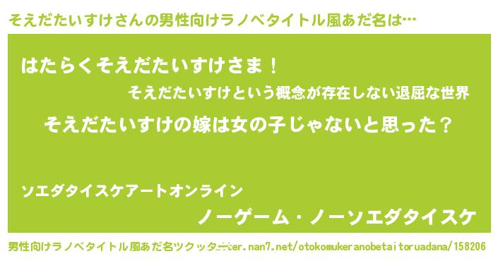 | 女子向けラノベタイトル風あだ名 | 『そえだたいすけ様がみてる』 |