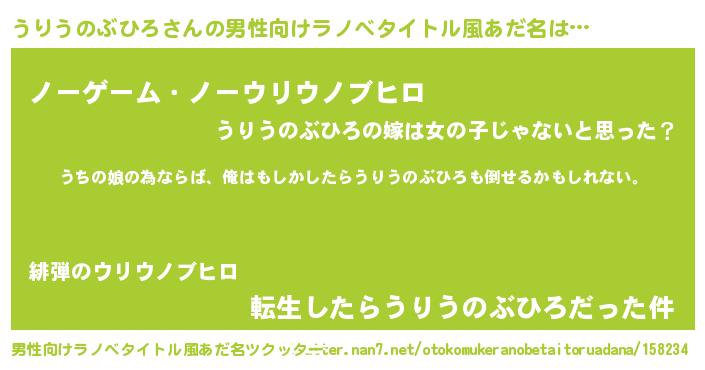 | 女子向けラノベタイトル風あだ名 | 『うりうのぶひろの婚約者』 |