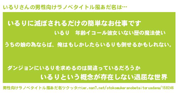 | 女子向けラノベタイトル風あだ名 | 『いるり伯爵の花嫁』 |