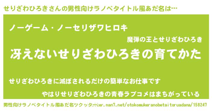 | 女子向けラノベタイトル風あだ名 | 『シンデレラせりざわひろき家の靴箱館』 |