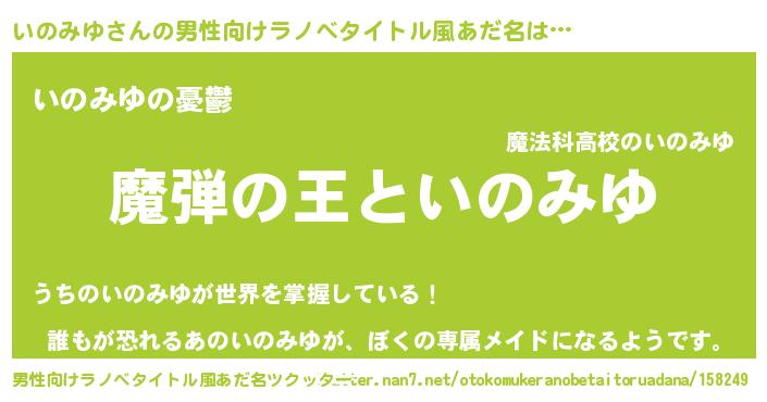 | 女子向けラノベタイトル風あだ名 | 『いのみゆが死なない童話 林檎のいのみゆの診療簿』 |