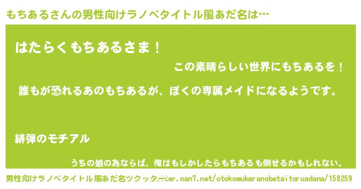 | 女子向けラノベタイトル風あだ名 | 『異世界でカフェもちあるを開店しました。』 |