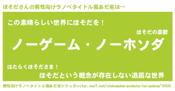 | 女子向けラノベタイトル風あだ名 | 『死神ほそだの再婚』 |