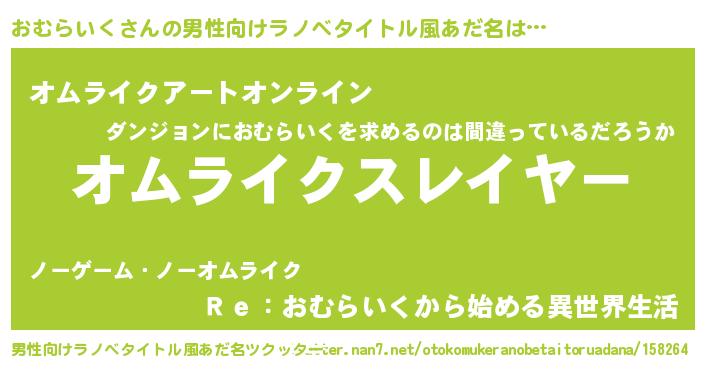 | 胡散臭い通販商品みたいなあだ名 | 『必ず成功する水晶球…その名も「おむらいく」』 |