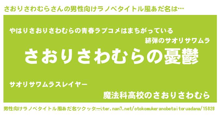 | 女子向けラノベタイトル風あだ名 | 『さおりさわむら姫と円卓の騎士』 |