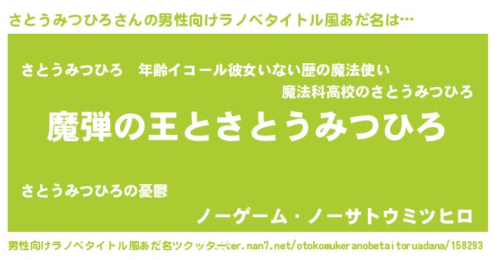 | 意味不明あだ名 | 『住所不定無職さとうみつひろ(47歳)』 |