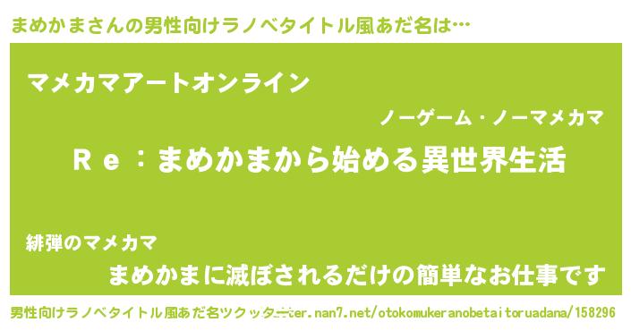 | 意味不明あだ名 | 『自称まめかま』『ペロリンまめかま』 |